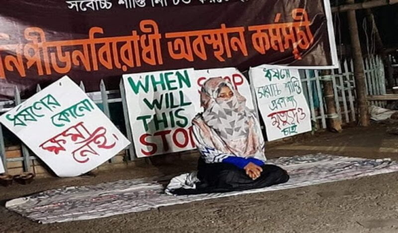 ধর্ষকের গ্রেফতারের দাবিতে ঢাবি ছাত্রীর অবস্থান কর্মসূচি অব্যাহত