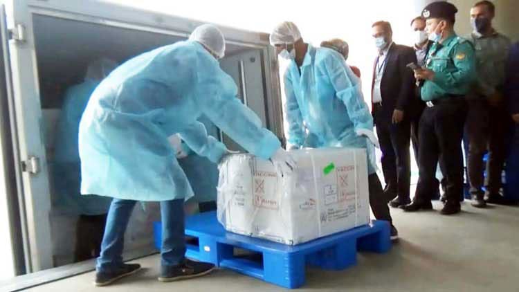 ঢাকা, ২৫ জানুয়ারি – চুক্তির আওতায় সোমবার ভারত থেকে বাংলাদেশে কোভিশিল্ডের ৫০ লাখ ডোজের প্রথম চালান পৌঁছেছে। বেক্সিমকো ফার্মাসিউটিক্যালস, সেরাম ইনস্টিটিউট ও বাংলাদেশ সরকারের মধ্যে ত্রিপক্ষীয় চুক্তির আওতায় যে তিন কোটি ভ্যাকসিন ডোজ আসার কথা রয়েছে, এ চালান তারই অংশ।