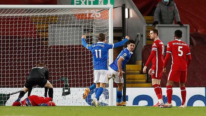 ঘরের মাঠ অ্যানফিল্ডে ব্যাক টু ব্যাক ম্যাচে হার মানলো ইংলিশ প্রিমিয়ার লিগের বর্তমান চ্যাম্পিয়ন লিভারপুল। যা ২০১২ সালের পর প্রথম। বুধবার রাতে তাদের ১-০ গোলে হারিয়ে দিয়েছে ব্রাইটন অ্যান্ড হোভ আলবিয়ন।