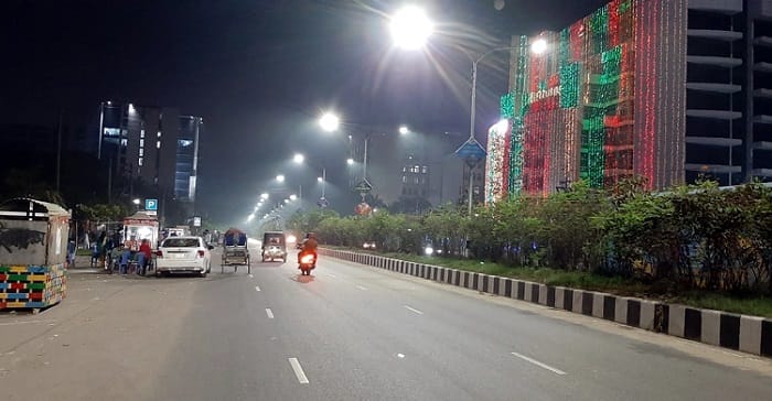 ঢাকা, ০৬ মার্চ – নিয়ন আলোর মতোই চাঁদের আলো যেখানে ফিকে হয়েছে, সেখানেই মাথা উঁচু করে দাঁড়িয়ে অত্যাধুনিক এলইডি লাইট। এমন লাইটে দিনের আলোর মতো ঝকঝক করছে ঢাকা উত্তর সিটি করপোরেশনের (ডিএনসিসি) বিভিন্ন সড়ক। গভীর রাতেও আলোর মিছিলে যোগ দিতে ছুটে আসছেন অনেকেই।