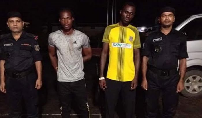 আটক দুজন হলেন-লাইবেরিয়ান বাসিন্দা দিরাস নাইয়ুমাহ সিন্ডার (২৬)-Dirus Nyumah Snyder (26) ও নাইজিরিয়ান বাসিন্দা সানকানমি অকসারসেমিলুসি (২৮)-Sunkanmi ocsursemilusi (28)। তাদের দু’জনের কাছে পাসপোর্ট-ভিসাসহ বৈধ কোনো কাগজপত্র নেই।
