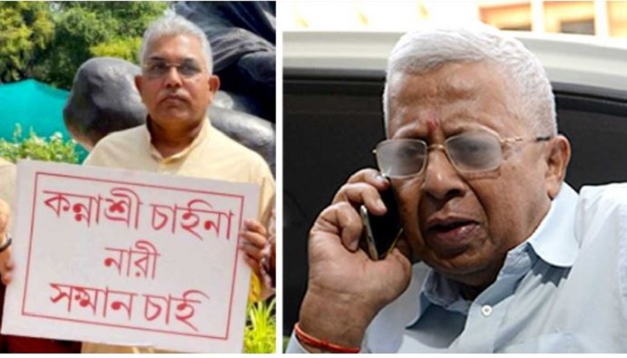 ধরনার ছবি প্রকাশ্যে আসতেই দিলীপকে কটাক্ষ করতে ছাড়েনি তৃণমূল কংগ্রেস। আর বৃহস্পতিবার টুইট করে বিজেপি নেতা তথাগত রায়ই তীব্র কটাক্ষ করেন দিলীপকে। এক টুইটে তিনি লেখেন, ‘এ জন্যেই বিদ্যাসাগর মশাই বলে গেছেন, মূর্খের অশেষ দোষ। পোস্টারটা যে ছেপেছে তার কথা বলছি। বাংলা বর্ণমালার হ্রস্ব-ই বর্ণটা পর্যন্ত চেনা যাচ্ছে না!’