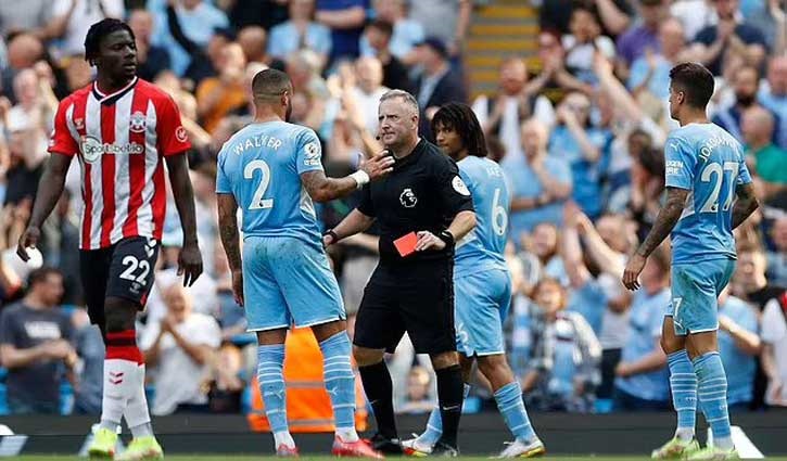 দ্বিতীয়ার্ধের শুরুতে সিটির পরিস্থিতি হয় আরও শোচনীয়। এ সময় তাদের কাইল ওয়াকার বক্সের মধ্যে সাউদাম্পটনের অ্যাডাম আর্মস্ট্রংকে ফাউল করে লাল কার্ড দেখেন। অন্যদিকে পেনাল্টি পায় সাউদাম্পটন। অবশ্য ভাগ্যদেবী সঙ্গে ছিলেন সিটির। ভিডির অ্যাসিস্ট্যান্ট রেফারি তথা ভিএআর চেকে দুটো থেকেই রেহাই পায় স্কাই ব্লুজরা।