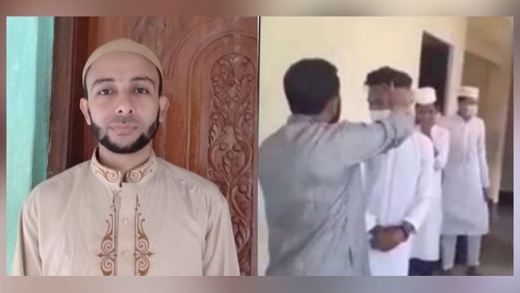 এর আগে, এ ঘটনার একটি ভিডিও শুক্রবার সামাজিক যোগাযোগ মাধ্যমে ভাইরাল হয়, এরপরই পুলিশ মঞ্জুরুলকে আটক করলো। জানা গেছে, মাদ্রাসার দাখিল শ্রেণির শিক্ষার্থী নাজমুল আলম ও ফজলে রাব্বীসহ কয়েকজন বুধবার শ্রেণিকক্ষে পাঠ কার্যক্রমে অংশ নেয়। একপর্যায়ে শিক্ষক মঞ্জুরুল কবির ছয়জনকে দাঁড় করিয়ে কক্ষের সামনের বারান্দা আসতে বলেন। এ সময় তিনি উত্তেজিত হয়ে একটি কাঁচি এনে একে-একে মাথার টুপি সরিয়ে সামনের অংশের এলোমেলোভাবে চুল কেটে দেন। পরে তারা লজ্জায় ক্লাস না করেই বেড়িয়ে যায়।