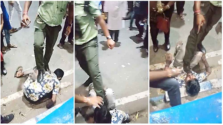 তরুণকে রাস্তায় ফেলে বুকে পা তুলে দিলেন গ্রিন পুলিশ!