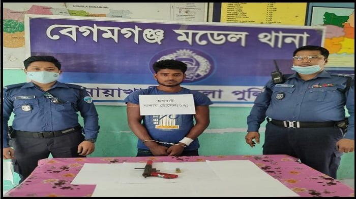বেগমগঞ্জ থানার ভারপ্রাপ্ত কর্মকর্তা (ওসি) মুহাম্মদ কামরুজ্জামান শিকদার বলেন, ‘বুধবার রাতে পুলিশ গোপন সংবাদের ভিত্তিতে অভিযান চালিয়ে উপজেলার জাহানাবাদ গ্রামের কালাগাজীর দক্ষিণ এলাকায় অভিযান চালিয়ে তাকে আটক করে। পরে তাকে নিয়ে অভিযান চালিয়ে জাহানাবাদ গ্রামের কালাগাজীর বাড়ির দিঘীর দক্ষিণ পাড়ের কবরস্থান থেকে একটি দেশীয় পাইপগান ও এক রাউন্ড কার্তুজ উদ্ধার করা হয়।’