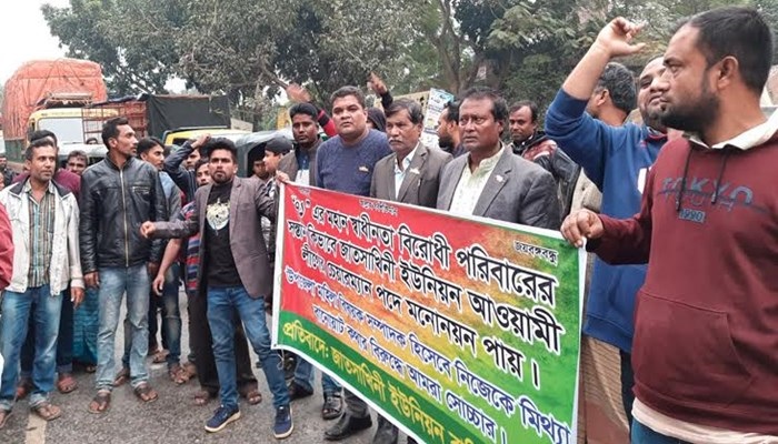 পাবনা, ০৫ ডিসেম্বর – পাবনার বেড়া উপজেলার জাতসাখিনী ইউনিয়ন পরিষদ (ইউপি) নির্বাচনে মুক্তিযোদ্ধাকে বাদ দিয়ে রাজাকার পরিবারের সন্তানকে নৌকা প্রতীক দেওয়ার অভিযোগ উঠেছে। এরই প্রতিবাদে শনিবার বিকালে বেড়া উপজেলার জাতসাখিনী ইউনিয়নের নাটিয়াবাড়ীতে মনোনয়নপ্রত্যাশী অন্যান্য প্রার্থী এবং এলাকাবাসী মানববন্ধন ও সড়ক অবরোধ করেন। এ সময় তারা আরও অভিযোগ করে বলেন, নৌকা প্রতীকের মনোনীত ওই প্রার্থী তার জীবন বৃত্তান্তে উপজেলা আওয়ামী লীগের মহিলাবিষয়ক সম্পাদক হিসাবে মিথ্যা তথ্য দিয়েও দলের সঙ্গে প্রতারণা করেছেন। তারা এ মনোনয়ন বাতিল করে যোগ্য প্রার্থীকে নৌকা প্রতীক দেওয়ার দাবি জানান।