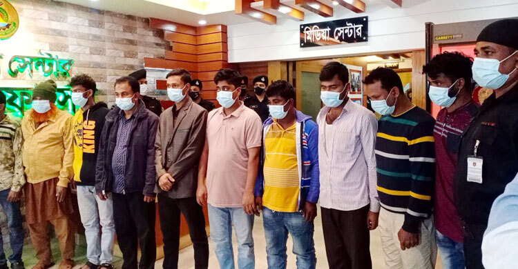 গ্রেফতাররা হলেন—হিটু মিয়া (৪০), ফরহাদ আলী (৫৮), লিটন শেখ (৩৮), রিপন মৃধা ওরফে জামাই রিপন (২৯), স্বপন মিয়া (২৭), জাকির ব্যাপারী (২৯), জলিল খাঁন (৪০), শ্রী লক্ষণ চন্দ্র দাস (২৬), শ্রী অজিত চন্দ্র সূত্রধর (২৭) ও ইখতিয়ার হোসেন (৪৭)।