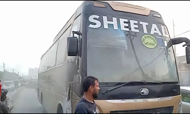নারায়ণগঞ্জে চলন্ত এসি বাসে আগুন