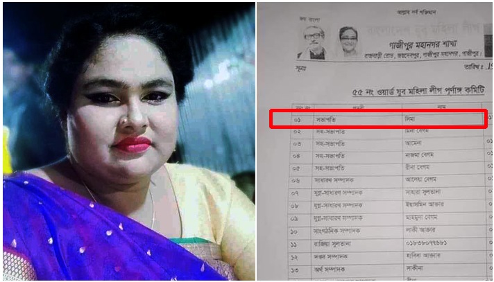 গাজীপুর, ২৭ জানুয়ারি – গাজীপুর মহানগরের ৫৫ নং ওয়ার্ড যুব মহিলা লীগের সদ্য ঘোষিত কমিটিতে মাদক কারবারি সীমা আক্তারকে সভাপতির দায়িত্ব দেওয়া হয়েছে বলে অভিযোগ পাওয়া গেছে। তিনি মাদকসহ আইনশৃঙ্খরা বাহিনীর হাতে বেশ কয়েকবার গ্রেপ্তার হয়ে জেলও খেটেছেন। সেই সঙ্গে তার নামে টঙ্গী পশ্চিম থানায় একাধিক মাদক মামলাও রয়েছে বলেও জানা গেছে।