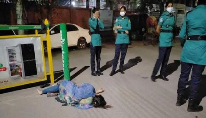 পুলিশের সঙ্গে কথা কাটাকাটির একপর্যায়ে সড়কে শুয়ে পড়েন। কিছুক্ষণ পরপর গড়াগড়ি। আবার শুয়ে থাকার ভান। কিছুক্ষণ পর উঠে হাঁটাহাঁটি, আবার রাস্তায় ঘুমের ভান। সড়কে ওই তরুণীর এমন অদ্ভুত দৃশ্য দেখে ভিড় জমে যায় আশপাশে। সঙ্গে সঙ্গে তাকে নিরাপত্তা দিতে ঘিরে ফেললেন চারজন নারী পুলিশ। পরে নিজ জিম্মায় আসামিকে থানা থেকে নিয়ে যান ওই তরুণী।