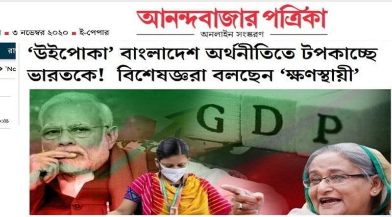 আনন্দবাজারের প্রকাশিত দীর্ঘ প্রতিবেদনটির শিরোনাম করা হয়েছে, ‘উইপোকা’ বাংলাদেশ অর্থনীতিতে টপকাচ্ছে ভারতকে! বিশেষজ্ঞরা বলছেন ‘ক্ষণস্থায়ী’। প্রতিবেদনে বাংলাদেশ ও ভারতের বিভিন্ন পরিসংখ্যান ও বিশ্লেষকদের বক্তব্য তুলে ধরা হয়েছে।
