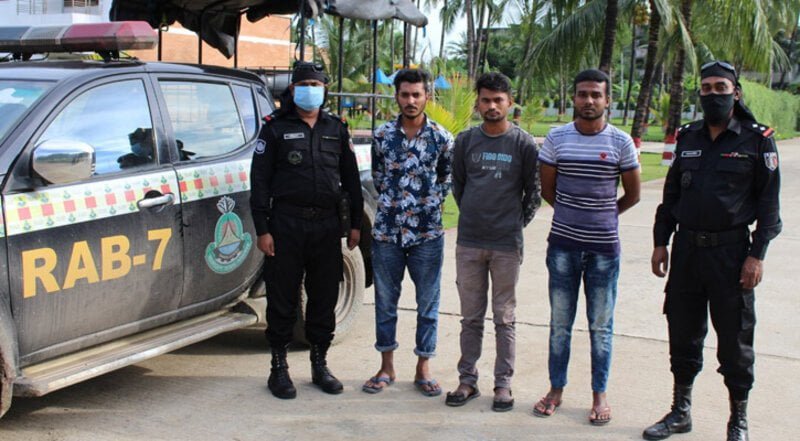 আটক তিনজন হলো- বড়পুল মইন্যাপাড়া এলাকার বাসিন্দা মো. সাইফুল ইসলাম (২৮), হালিশহর হাউজিং নতুনপাড়া এলাকার বাসিন্দা মো. হুমায়ুন কবির (২৭) ও বন্দর নিউমুরিং আবাসিক এলাকার বাসিন্দা মো. হাসান মুরাদ রণি (২৭)। তারা আইন শৃংখলা রক্ষাবাহিনী ও রাজনৈতিক দলের নেতাদের নামে পরিবহন থেকে চাঁদা আদায় করতো বলে জানিয়েছে র্যাব।