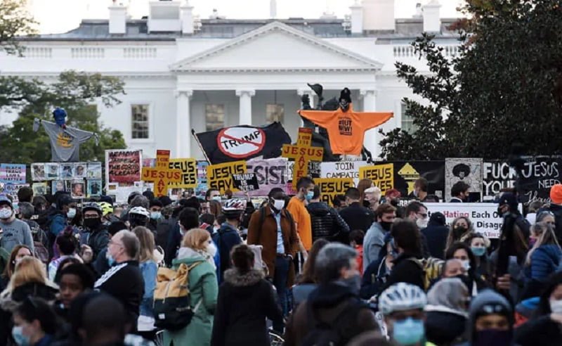 হোয়াইট হাউজের বাইরে উল্লাস করছেন বাইডেন সমর্থকরা