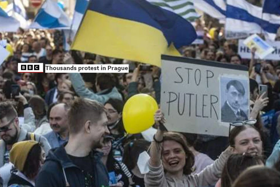 পুতিনকে ‘পুটলার’ বললেন প্রাগের রুশ আন্দোলনকারীরা!