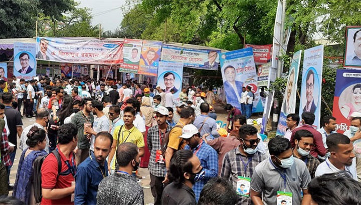 আর সাধারণ সম্পাদক হিসেবে প্রতিদ্বন্দ্বিতা করছেন গাজী জহিরুল ইসলাম, আকতার হোসেন ও মেহেদী হাসান। ২১টি পদে তিনটি পরিষদে মোট ৬১ জন ও স্বতন্ত্র ১০ জনসহ মোট ৭১ প্রার্থী নির্বাচনে লড়ছেন।