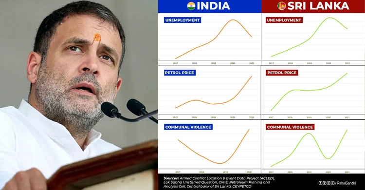 নিজের দাবির সপক্ষে দু’দেশের মধ্যে বেশ কিছু মিল তুলে ধরেছেন তিনি। ভারত ও শ্রীলঙ্কায় বেকারত্ব, পেট্রলের দাম ও সাম্প্রদায়িক সহিংসতার তুলনামূলক চিত্র তুলে ধরে বুধবার (১৮ মে) এমন দাবি করেছেন রাহুল।