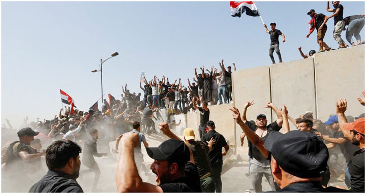 আল জাজিরার খবরে বলা হয়, শনিবার (৩০ জুলাই) ইরাকি বিক্ষোভকারীরা নিরাপত্তা ব্যবস্থা সরিয়ে পার্লামেন্ট ভবনে ঢুকে পড়ে। বিক্ষোভকারীদের ঠেকাতে নিরাপত্তা বাহিনী কাঁদানে গ্যাস ও সাউন্ড বোমা ছোঁড়ে। বিক্ষোভকারীরা গ্রিন জোনের চারপাশ থেকে পার্লামেন্ট ভবনে এসে জড়ো হতে থাকে। অনেকে গ্রিন জোন ঘিরে থাকা বেশ কয়েকটি বড় কংক্রিটের প্রাচীর টপকাতে দড়ি ব্যবহার করেন।