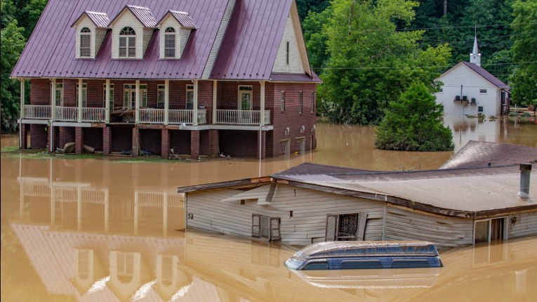 বুধবার ও বৃহস্পতিবার টানা ভারি বৃষ্টিতে কেন্টাকির পূর্বাঞ্চলে বহু বাড়িঘর ভেসে যায়, রাস্তাঘাট পানিতে ডুবে যায়। নদী উপচে পানি ঢুকে পড়ে লোকালয়ে।