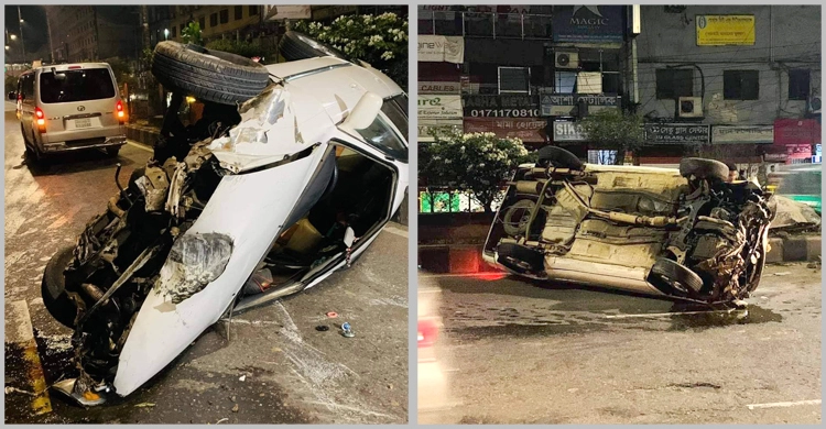 আইল্যান্ডে ধাক্কায় উল্টে গেলো প্রাইভেটকার, চালক উধাও