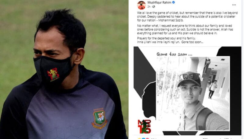 সামাজিক যোগাযোগ মাধ্যম ফেসবুকে মুশফিক লিখেছেন, ‘আমরা সবাই ক্রিকেট খেলাটি ভালোবাসি। তবে একটা জিনিস মনে রাখবেন, ক্রিকেটের বাইরেও একটা জীবন আছে। আমাদের দেশের প্রতিভাবান খেলোয়াড় মোহাম্মদ সজীবের আত্মহত্যার খবরে আমি অত্যন্ত মর্মাহত।’