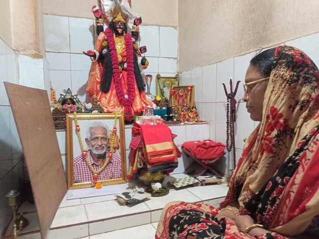 সোমবার (৩ অক্টোবর) দিলীপের বাড়িতে গিয়ে দেখা গেছে সুনসান নীরবতা। উৎসব নিয়ে ব্যস্ততা দেখা যায়নি পরিবারের সদস্যদের। ঘরের এক কোণে বসে পূজা করছিলেন দিলীপের স্ত্রী রূপা দাস। পূজা শেষ করে এসে এই প্রতিবেদকের সঙ্গে কথা বলেছেন। জানিয়েছেন সংসারে টানাপোড়েনের কথা।