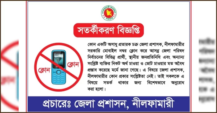 ডিসির মোবাইল নম্বর ক্লোন করে অর্থ আদায়ের চেষ্টা