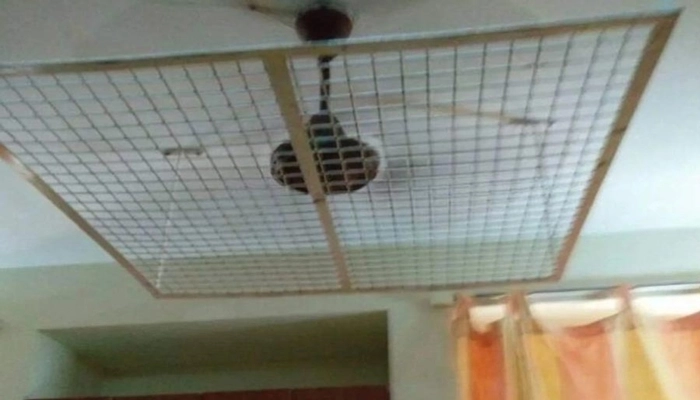 সামাজিক যোগাযোগ মাধ্যমে আলোচনায় আসা ছবিটিতে দেখা যাচ্ছে, একটি সিলিং ফ্যানের নীচে লোহার বেড়া দিয়ে আটকে দেয়া হয়েছে।