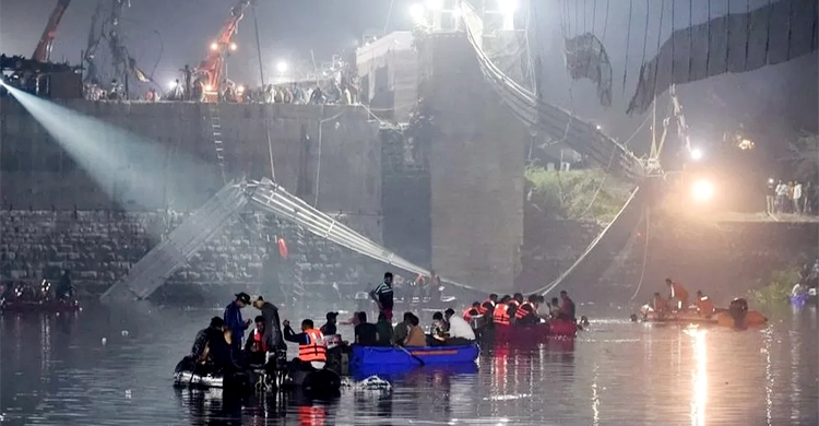 এর আগে গতকাল রোববার স্থানীয় সময় সন্ধ্যা পৌনে সাতটার দিকে গুজরাটের মোরবি জেলার মাচ্ছু নদীতে ব্রিটিশ আমলে নির্মিত ঐতিহাসিক ওই ঝুলন্ত সেতু ভেঙে পড়ে। দুর্ঘটনার পর রাতেই ৯১ জনের মৃত্যুর খবর জানিয়েছিল এনডিটিভি।