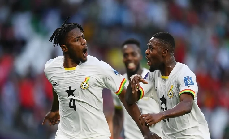 দোহা, ২৮ নভেম্বর – ক্রিশ্চিয়ানো রোনালদোর পর্তুগালের বিপক্ষে প্রথম ম্যাচে দুর্দান্ত লড়াই করে ৩-২ গোলে হারা ঘানা দ্বিতীয় ম্যাচেও নৈপুণ্য অব্যাহত রেখেছে। সোমবার কাতারের আল রায়ান অ্যাডুকেশন সিটি স্টেডিয়ামে ‘এইচ’ গ্রুপের ম্যাচে দক্ষিণ কোরিয়ার বিপক্ষে ঘানা প্রথমার্ধে এগিয়ে আছে ২-০ গোলে। গোল করেছেন ২৪ মিনিটে সালিসু ও ৩৪ মিনিটে মোহাম্মেদ কুদুস।