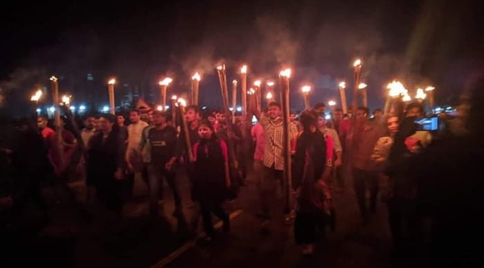 ববিতে মশাল মিছিল ও ধর্ষকের প্রতীকী কুশপুতুল দাহ