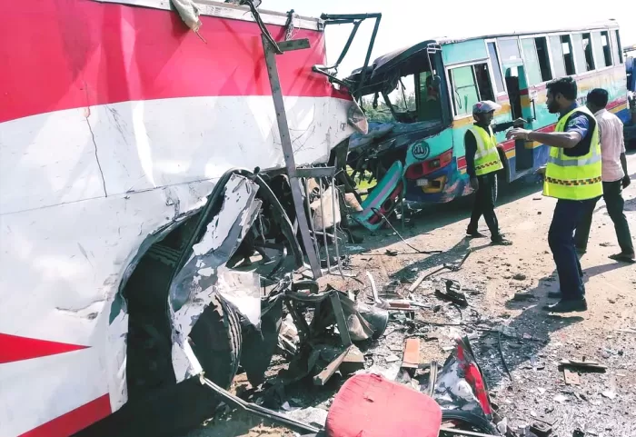 পঞ্চগড়, ১৬ ডিসেম্বর – পঞ্চগড়ে দুই বাসের মুখোমুখি সংঘর্ষে দুই শিশুসহ অন্তত ১৫ যাত্রী আহত হয়েছেন। আজ শুক্রবার সকাল ৭টার দিকে পঞ্চগড়-তেঁতুলিয়া জাতীয় মহসড়কের সাড়ে নয় মাইল এলাকায় এ দুর্ঘটনা ঘটে।
