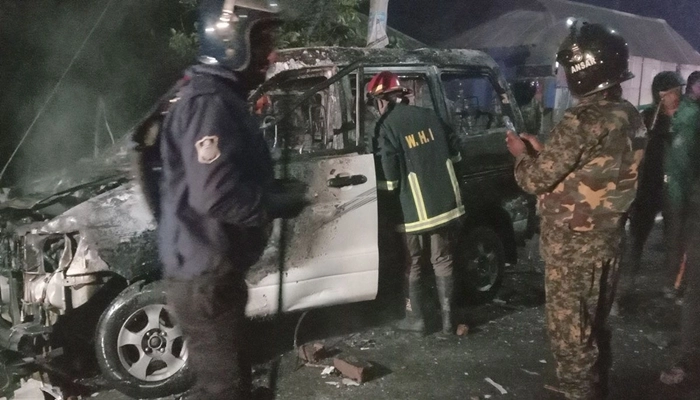 রংপুরে বিজিবির টহল গাড়িতে আগুন