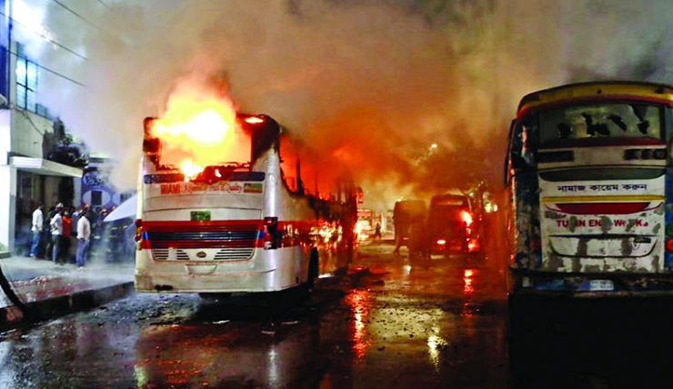 শ্রমিক হতাহতের খবরে চার বাসে আগুন