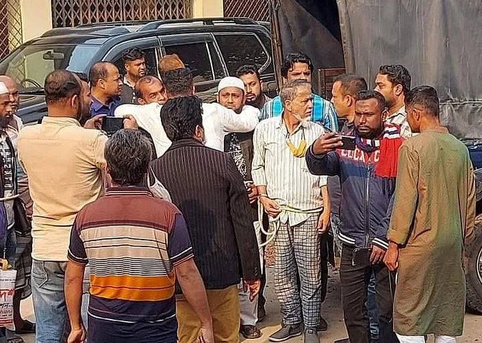 বীর মুক্তিযোদ্ধা আবু ছালেককে কোমরে দড়ি বেঁধে আদালতে নেওয়ার ছবি ভাইরাল