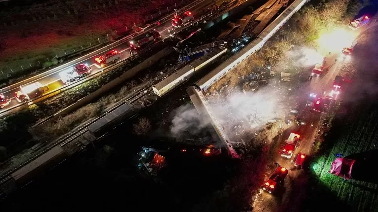 রাজধানী এথেন্স থেকে ৩৮০ কিলোমিটার উত্তরে টেম্পের কাছাকাছি এলাকার ওই সংঘর্ষে একাধিক বগি লাইনচ্যুত হয় ও অন্তত তিনটি আগুনে বিস্ফোরিত হয়।