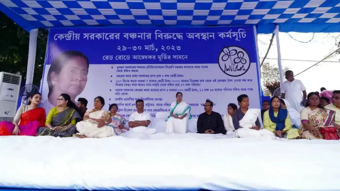পশ্চিমবঙ্গ সরকারের অভিযোগ, ২০২১ সালের ডিসেম্বর থেকে একশো দিনের কাজের প্রকল্পে ৭ হাজার কোটি রুপি আটকে রেখেছে কেন্দ্রীয় সরকার। তাতে ১৭ লাখ পরিবার আর্থিক বঞ্চনার শিকার হচ্ছেন। প্রধানমন্ত্রী আবাস যোজনায় ৮ হাজার ২০০ কোটি রুপি বকেয়া রয়েছে প্রায় ১১ লাখ পরিবারের বাড়ি তৈরির জন্য। সব মিলিয়ে ১ লাখ কোটি রুপির বেশি অর্থ কেন্দ্রের থেকে পায় বলে রাজ্যের দাবি। তার বিরুদ্ধেই এ দিন থেকে অবস্থান কর্মসূচি শুরু করেছেন মমতা।