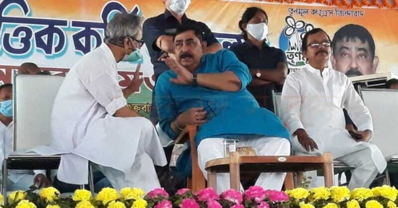 আশিসদাকে বলেছি তুমি মন্ত্রী আছো, দেখো।” তিনি দাবি করেন, গতকালের বৈঠকের তিনটি ক্যামেরায় ছবি তোলা হয়েছে। তার কাছে থাকা ফুটেজে স্পষ্ট তিনি মন্ত্রীকে অপদার্থ বলেননি। তবে এদিনের সভায় গতকালের বিতর্কের কোনও আঁচ পড়েনি। আশিস বন্দ্যোপাধ্যায় ও অনুব্রত মণ্ডল পাশাপাশি বসেছিলেন। খোশমেজাজে সভা পরিচালনা করেছেন। তবে মুখ ফসকে মন্ত্রীকে প্রকাশ্যে কটাক্ষ করে অনুব্রত যে বেশ বিব্রত তা এদিন বারবার আশিসবাবুর প্রশংসায় স্পষ্ট।