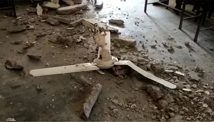 জরাজীর্ণ শ্রেণিকক্ষে খুলে পড়ল ফ্যান, শিক্ষক আহত