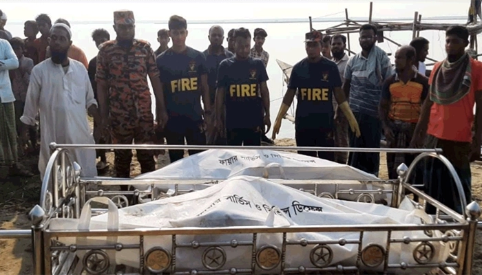 ফায়ার সার্ভিস জানায়, রোববার (৩০ এপ্রিল) সকালে বর রাব্বি ও তার মা সেলিনা আক্তারের মরদেহ বদনার চর নামক জায়গায় পাওয়া যায়। পরে একই দিন সকাল ১০টায় লতারচর নামকস্থান থেকে শিশু খাদিজার (৫) মরদেহটি উদ্ধার করা হয়। অন্যদিকে দুপুর ২টার দিকে সময় বদনার চর জায়গা থেকে আরেক শিশু মানসুরার (৮) মরদেহ উদ্ধার করা হয়।