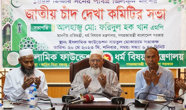 শনিবার (২০ মে) বাদ মাগরিব বায়তুল মুকাররম জাতীয় মসজিদের ইসলামিক ফাউন্ডেশন সভাকক্ষে জাতীয় চাঁদ দেখা কমিটির সভায় এ সিদ্ধান্ত নেওয়া হয়। এতে সভাপতিত্ব করেন ধর্ম প্রতিমন্ত্রী মো. ফরিদুল হক খান।