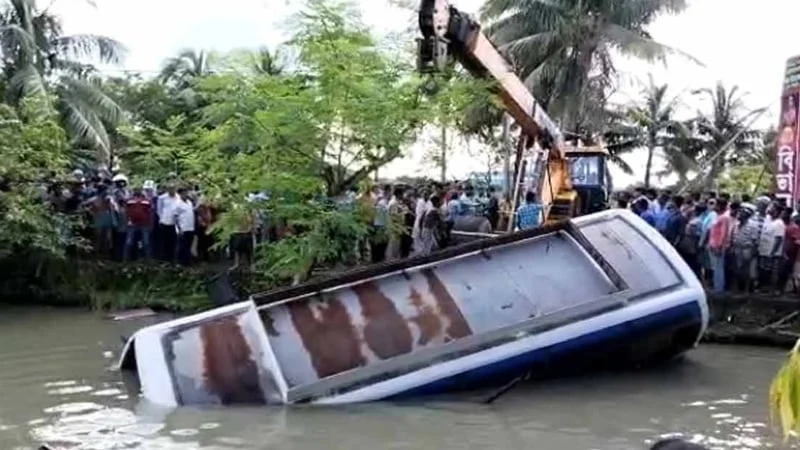 ঝালকাঠিতে যাত্রীবাহী বাস নিয়ন্ত্রণ হারিয়ে পুকুরে, নিহত ১৩