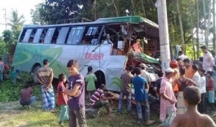 “এতে বাসের মাথা দুমড়ে-মুচড়ে গেলে ঘটনাস্থলেই দুইজন নিহত হন।”