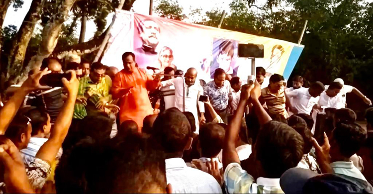 বক্তব্য দেওয়ার সময় মঞ্চ ভেঙে পড়লেন এমপি আয়েন উদ্দিন