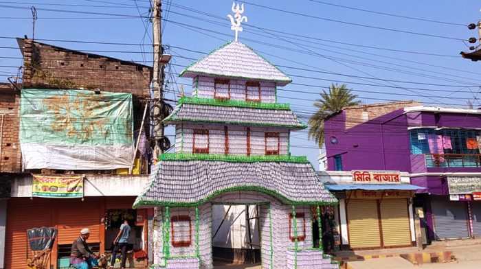 খালি বোতল দিয়ে তৈরি হলো পূজার গেট