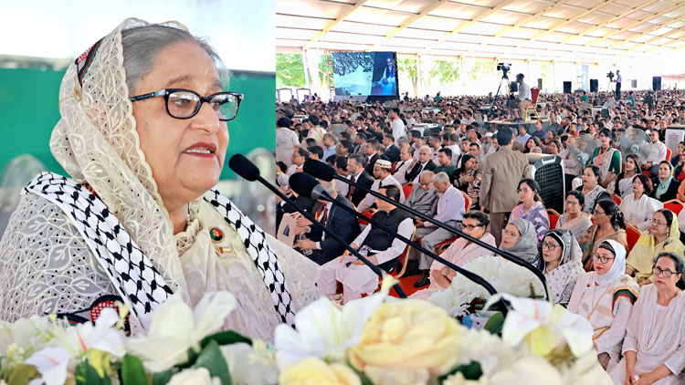 প্রধানমন্ত্রী বলেন, ‘জাতির পিতা দেশের মানুষের আর্থসামাজিক উন্নয়নের লক্ষ্য নিয়ে ছয় দফা দিয়েছিল। ছয় দফা যখন দিয়েছিল তখনও তিনি ঢাকা কেন্দ্রীয় কারাগারে বন্দি ছিলেন। বাংলাদেশের মানুষ গণঅভ্যুত্থান চালিয়ে জাতির পিতাকে উদ্ধার করেছিল। তিনি বারবার গ্রেপ্তার হয়েছেন, অনেক সময় তাকে সাজাও দেওয়া হয়েছে। কিন্তু তিনি থেমে যান নাই।’