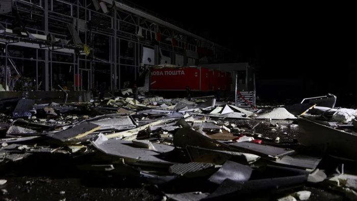সোশ্যাল মিডিয়ায় ইউক্রেনের প্রেসিডেন্ট ভলোদিমির জেলেনস্কির শেয়ার করা ভিডিওতে দেখা যায়, হামলায় মারাত্মক ক্ষতিগ্রস্ত হয়েছে ইউক্রেনীয় পোস্টাল অপারেটর নোভা পোশতার গুদামটি। বিস্ফোরকের আঘাতে উড়ে গেছে এর দরজা-জানালা।