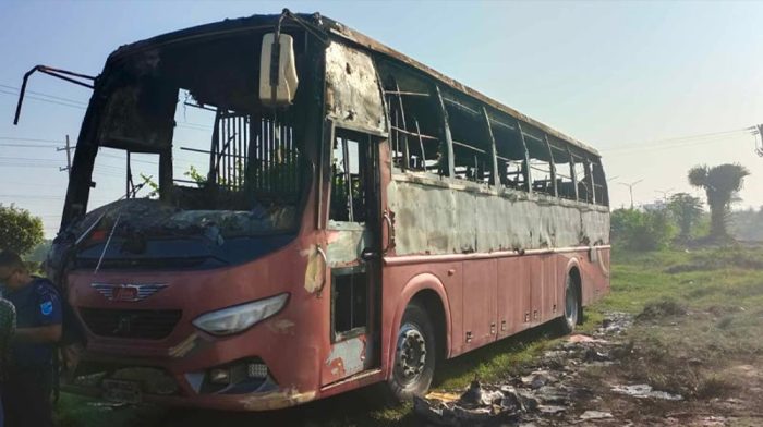 সাভারে বাসে আগুন, আটক ২