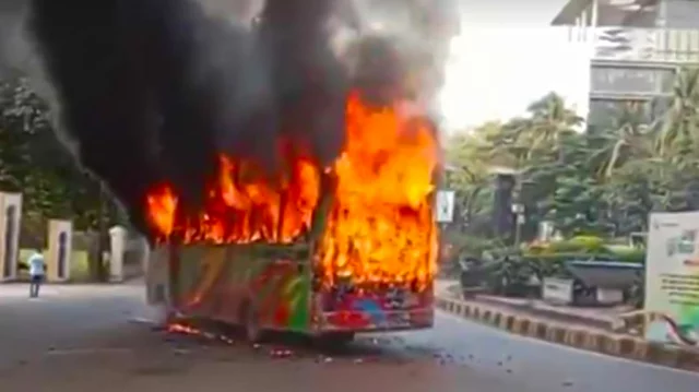 উত্তরায় ‘পরিস্থান’ বাসে আগুন