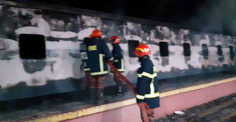 মধ্যরাতে দুর্বৃত্তদের আগুনে পুড়লো কমিউটার ট্রেন